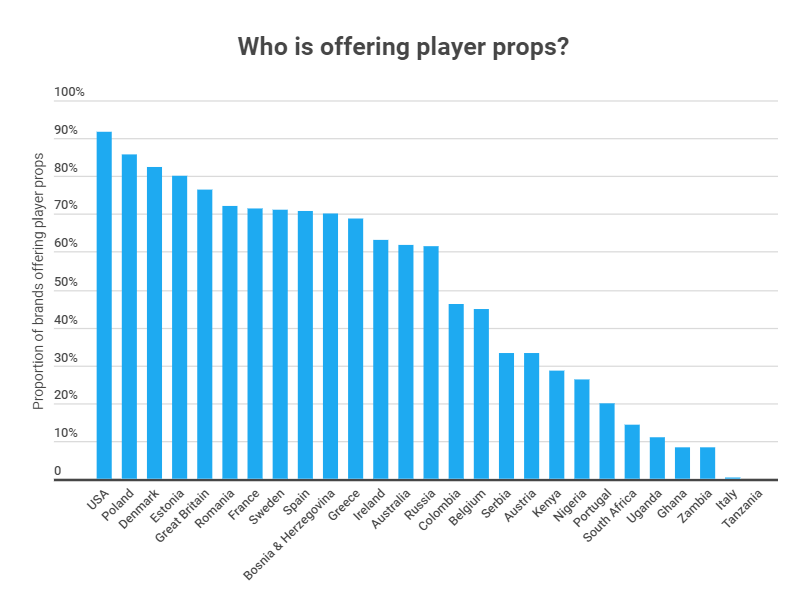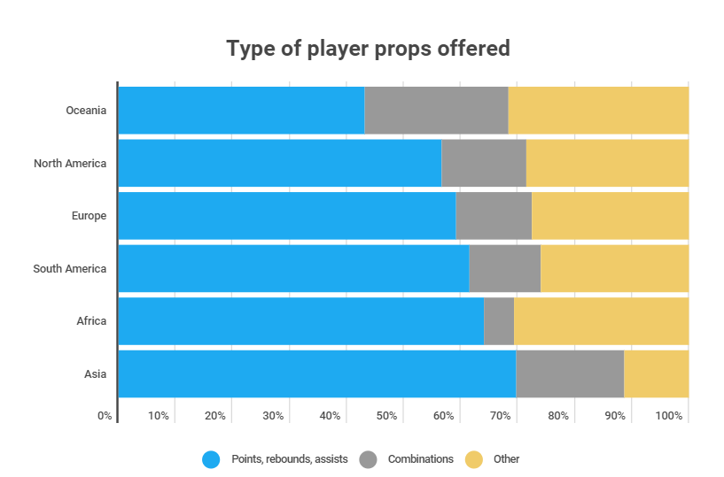 Global growth in player propositions continue strongly with the vast majority of US based sportsbooks recognising the necessitate for their options to serve customer expectations and demand. Points markets are the dominate bet type being offered, for the most part more than 50% of all player props are points derivative markets.